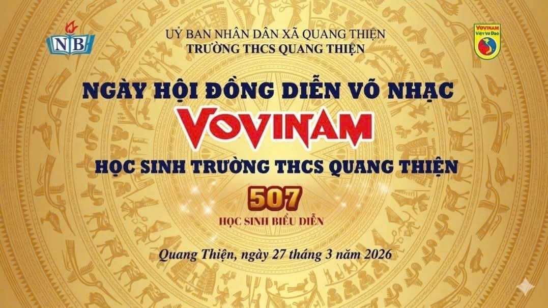 🌈 Thực hiện Công văn số 520/SGDĐT-CTHSSV ngày 03/3/2026 và Công văn số 784/SGDĐT-CTHSSV ngày 23/3/2026 của Sở GD&ĐT Ninh Bình về việc tổ chức Chương trình đồng diễn Ngày hội võ nhạc Vovinam, Trường THCS Quang Thiện thông báo chương trình đồng diễn: